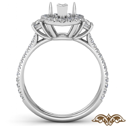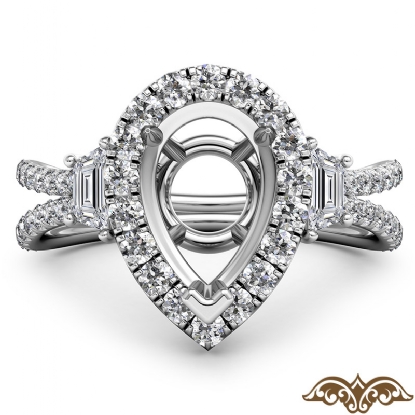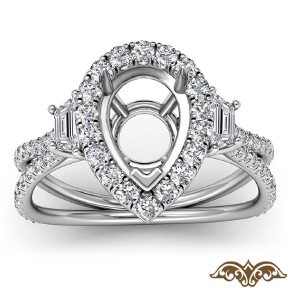 Pear Semi Mount French Pave 3 Stone Halo Diamond Engagement Ring 14k Gold 1.10Ct