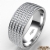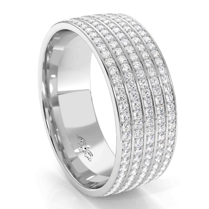 Luxurious and shimering 5 row diamond men's eternity wedding band elegantly crafted in 14k white gold. Features 1.50 carat round diamonds in a micro pave setting. This dazzling wedding band available in 14k & 18k white gold, yellow gold, rose gold and platinum 950.