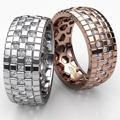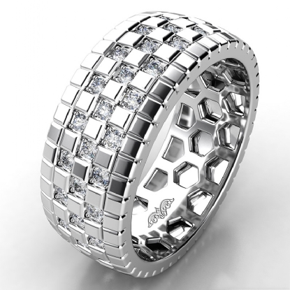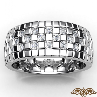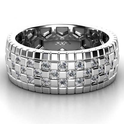 Elegant checkered diamond men's eternity wedding band crafted in 14k white gold. This sophisticated wedding band features 0.85 carat round diamonds in a micro pave setting on checkerboard pattern. Available in 14k & 18k white gold, yellow gold, rose gold and platinum 950.