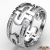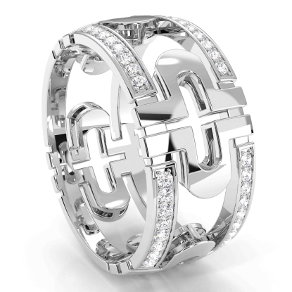 Modern designer men's diamond eternity wedding band crafted in polished finish 14k white gold. Features 0.50 carat round diamonds in a micro pave setting with beautiful striking pattern. Available in 14k & 18k white gold, yellow gold, rose gold, and platinum 950.