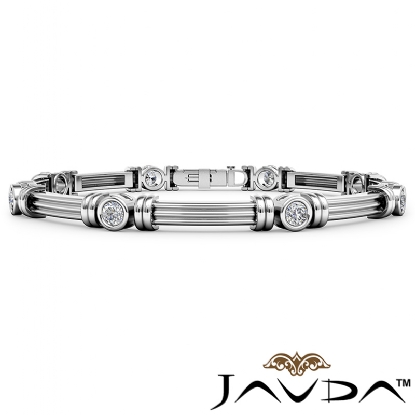 Our beautiful designer round diamond line bracelet is made from high quality 14k white gold. This line bracelet features 1 carat total round diamonds in a bezel setting. The bracelet measures 7.25 inches length and 6.1mm width and the center design give this bracelet a fancy and stylish appearance.
