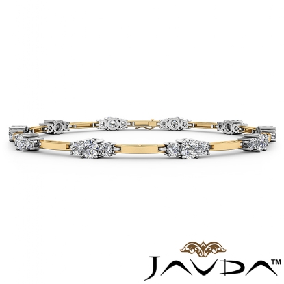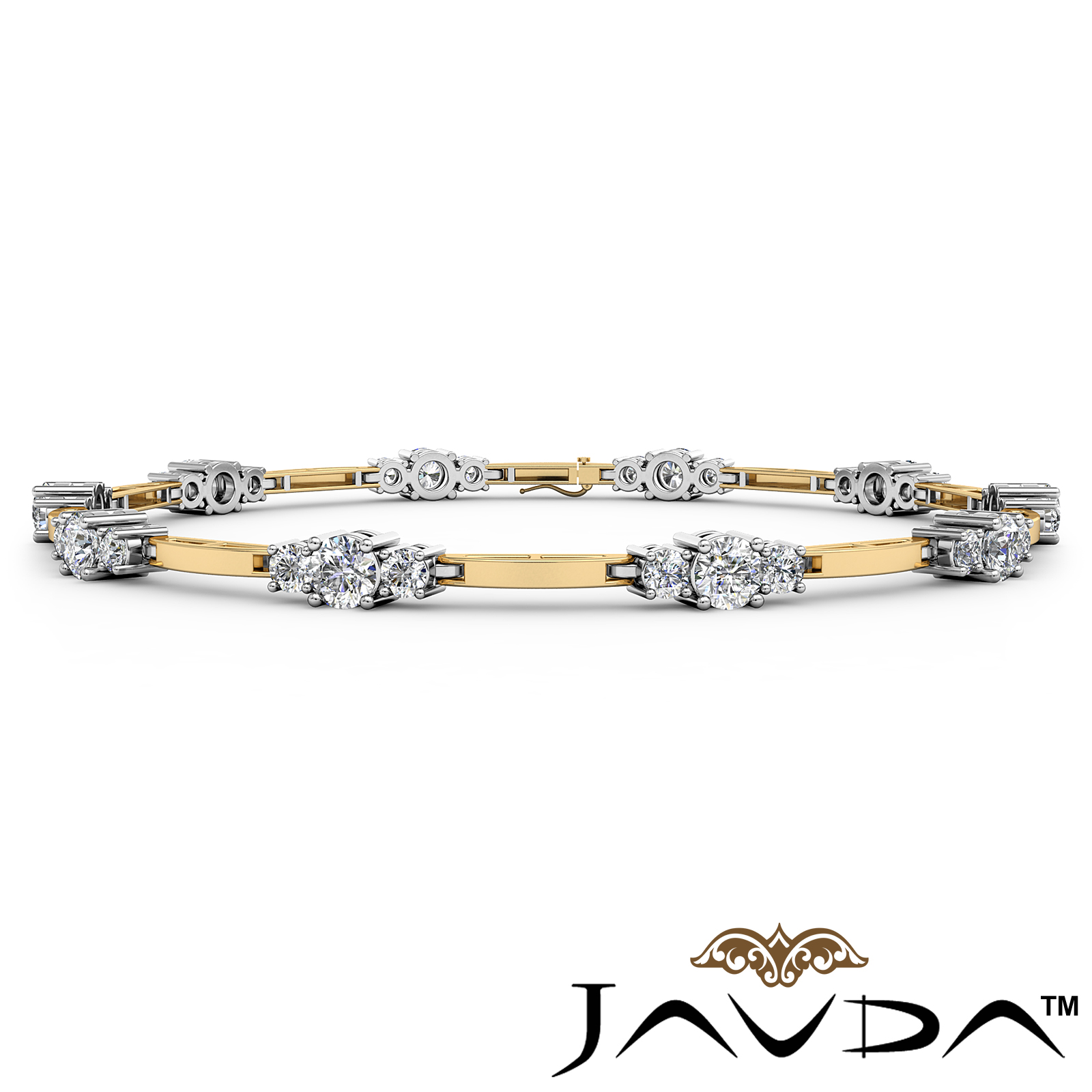 3.6mm Prong Set 2.5Ct Round Diamond Line Bracelet 7 Inch Length 14k 2 Tone Gold