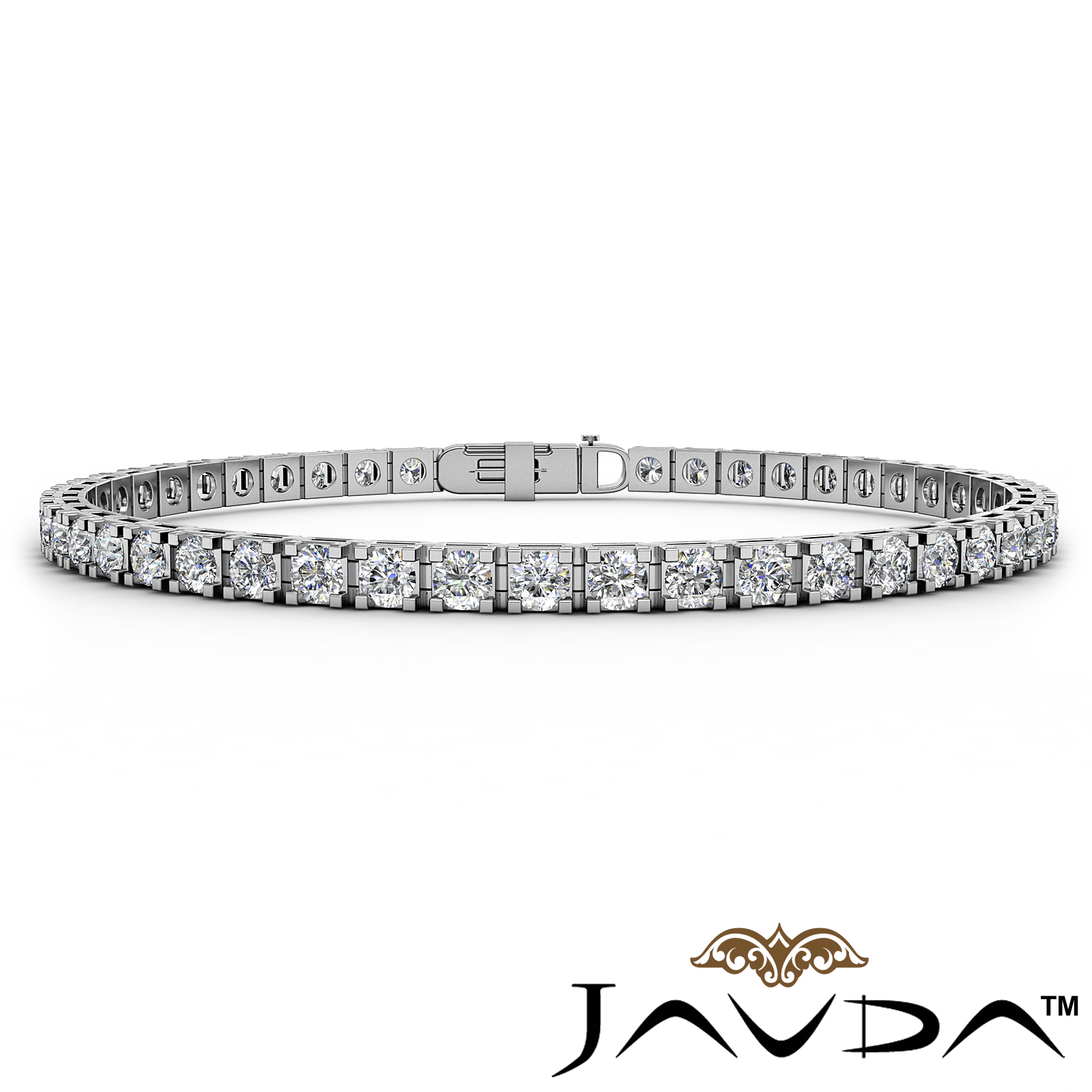 A classy and glorious round diamond line bracelet crafted in 14k white gold, look elegant in this gleaming diamond bracelet. This bracelet features 4.6 carat round diamond beautifully set in a prong setting with 3.2mm width and 7 inches length. Available in 14k and 18k white gold and yellow gold and platinum 950.