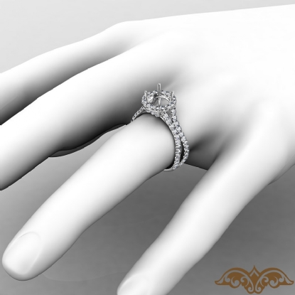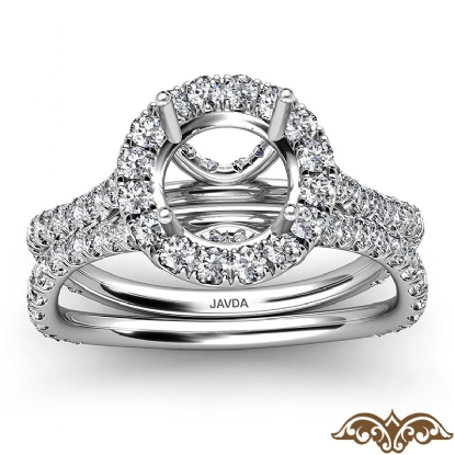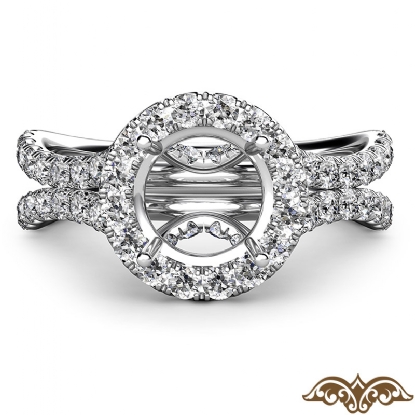 Round Cut Semi Mount Halo Split Shank Diamond Engagement Ring 14k Gold 1.10Ct