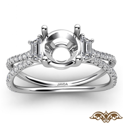 Three Stone Split Shank Round Semi Mount Diamond Engagement Ring 14k Gold 0.80Ct