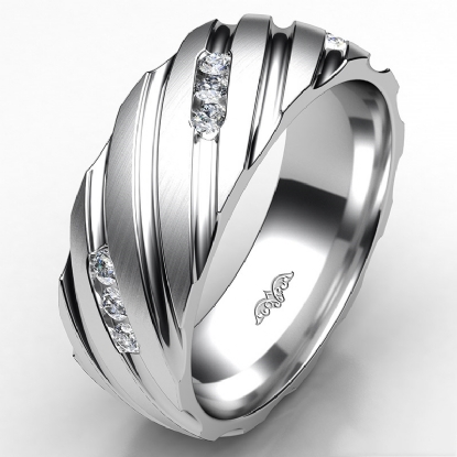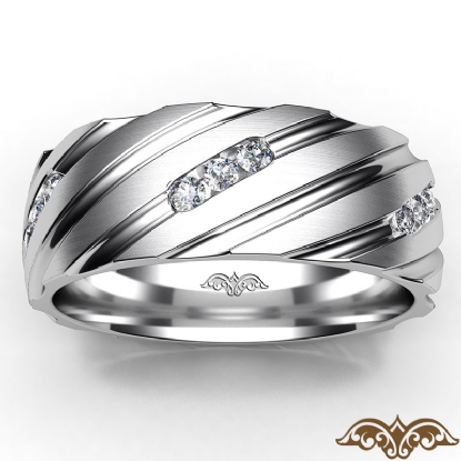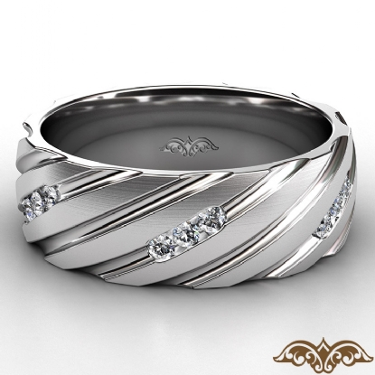 Diagonal Groove Matte Men's Eternity Diamond Wedding Band 14k White Gold 0.50Ct.