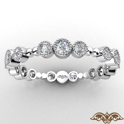 Milgrain & Bead Round Diamond Eternity Women's Wedding Band 14k W Gold 0.35 Ct.