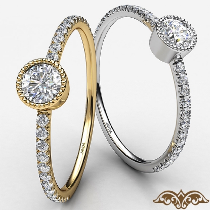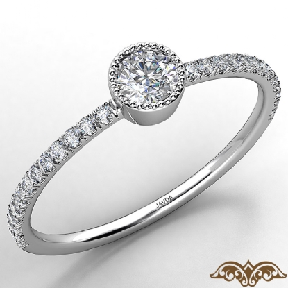 Milgrain & U Cut Pave Round Diamond Women's Fashion Ring 14k White Gold 0.25 Ct