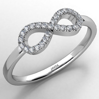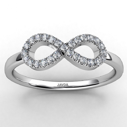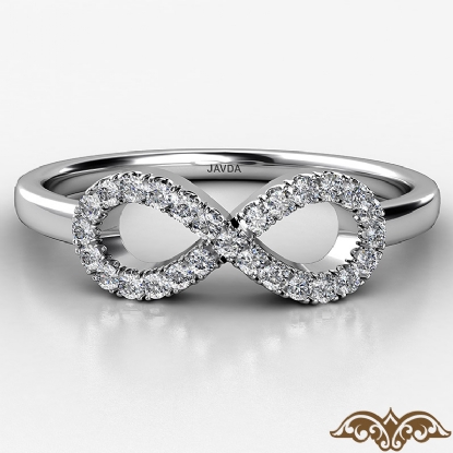 Show your love with this charming infinity round diamond women's fashion ring artfully crafted in 14k white gold. Features 0.15 carat round diamonds in a U cut split pave setting. This ring is a symbol of eternal love, available in 14k & 18k white gold, yellow gold, rose gold and platinum 950. If you don't find your desired jewelry, please don't hesitate to contact our designer to make your custom jewelry design
