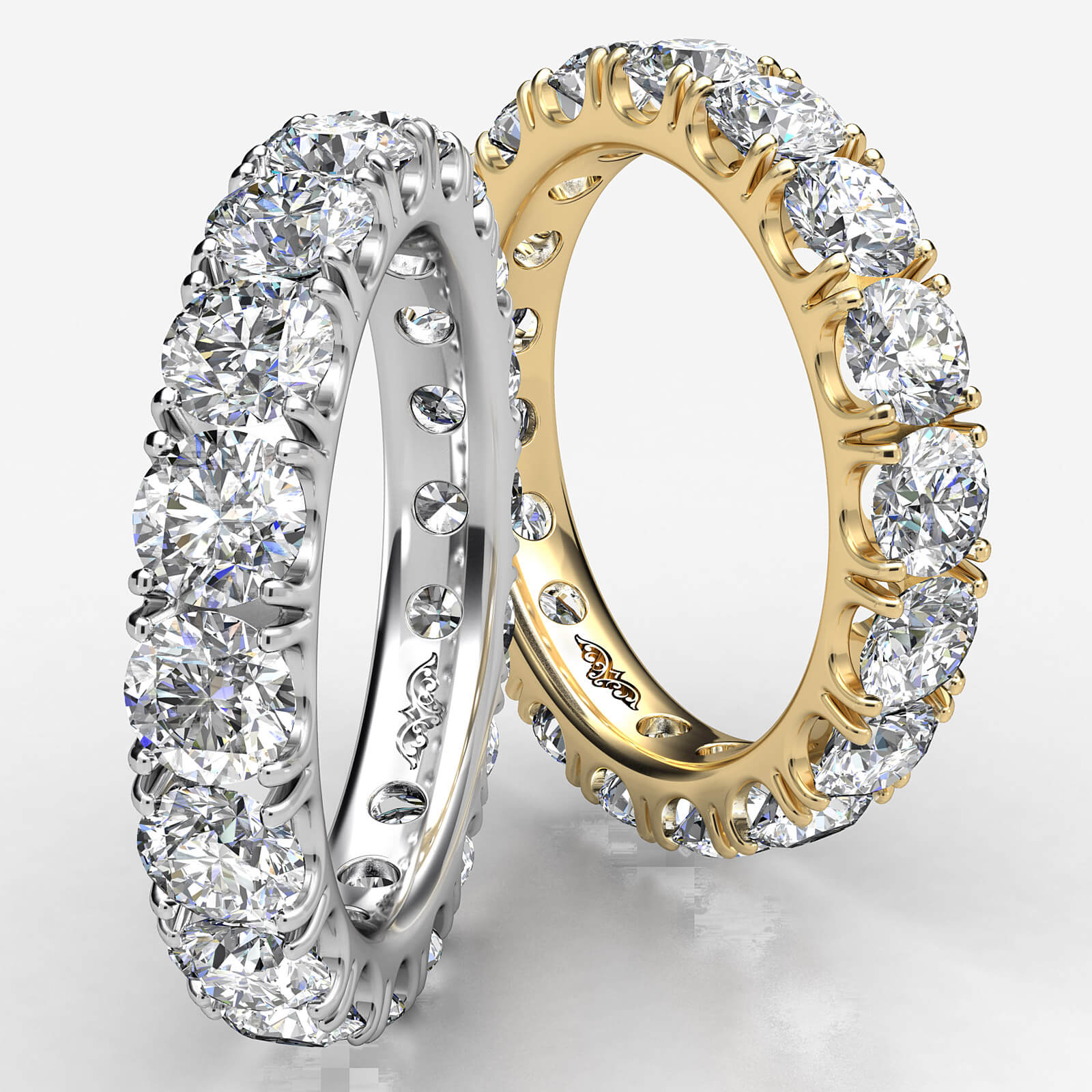 This elegant and classic round diamond eternity women's wedding band handcrafted in high quality 14k white gold. Features 4.10 carat brilliant round diamonds in a french u cut pave setting. This classy ring style is perfect for any occasion, available in 14k & 18k white gold, yellow gold, rose gold and platinum 950. If you don't find your desired jewelry, please don't hesitate to contact our designer to make your custom jewelry design