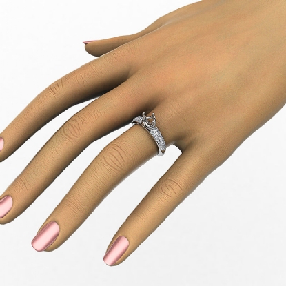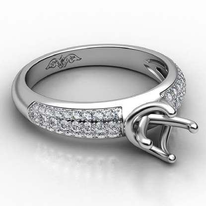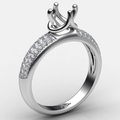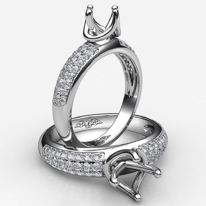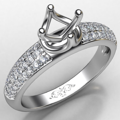Designer three row round diamond semi mount engagement ring handmade in 14k white gold. This engagement ring setting showcases 0.30 carat round diamonds in a micro pave setting on shank. The most romantic gift you can give to your women, available in 14k & 18k white gold, yellow gold, rose gold and platinum 950. If you don't find your desired jewelry, please don't hesitate to contact our designer to make your custom jewelry design