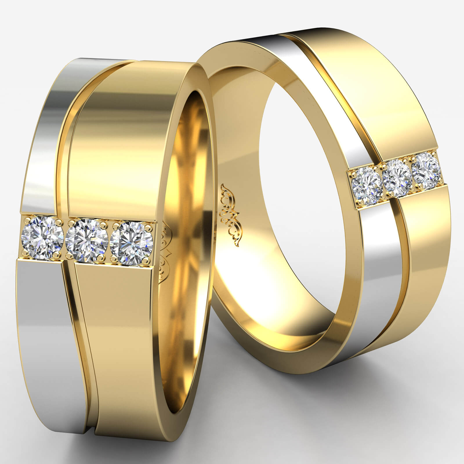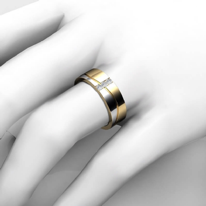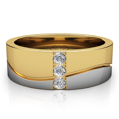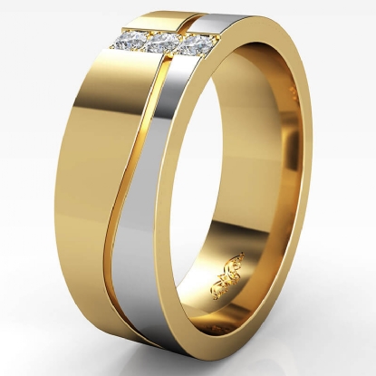 Classic grooved 3 stone round diamond men's wedding band crafted in 14k two-tone gold. This charming ring features center grooved design that carries 0.15 carat three round diamonds in a micro pave setting. This comfort fit wedding band available in 14k & 18k two-tone gold. If you don't find your desired jewelry, please don't hesitate to contact our designer to make your custom jewelry design.
