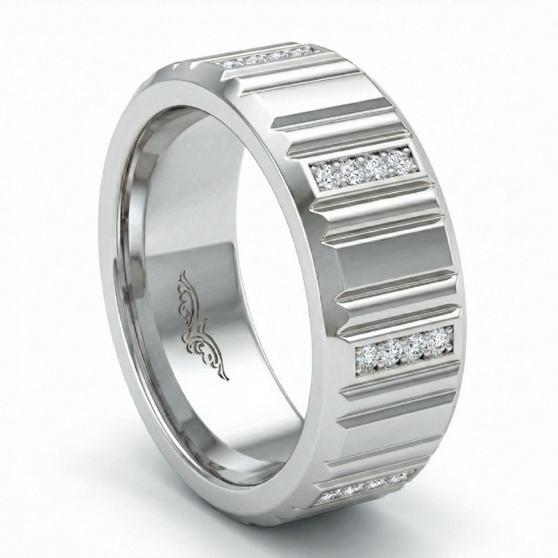 Vertical Cuts Round Diamond Eternity Men's Wedding Band 14k White Gold 0.25Ct
