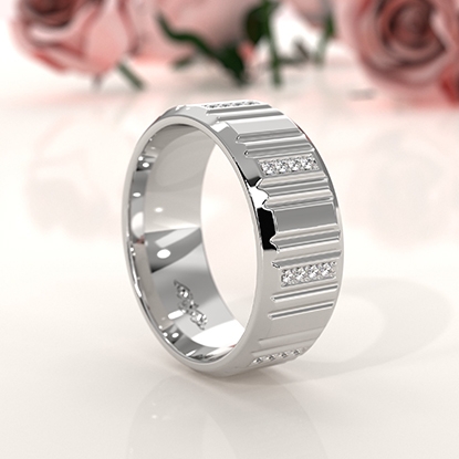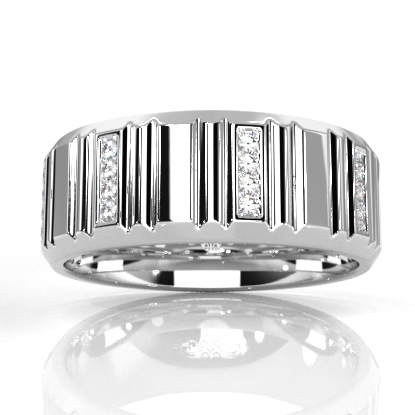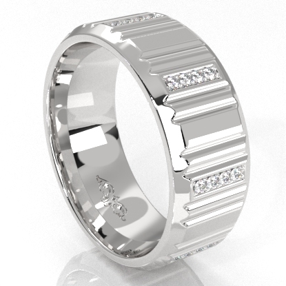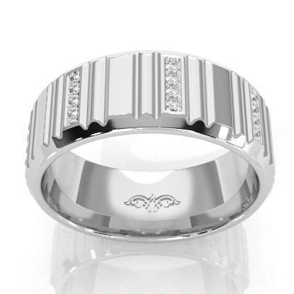 This comfort-fit wide vertical cuts round diamond eternity men's wedding band handcrafted in high quality 14k white gold. Features polished finish vertical cuts and the row of 0.25 carat round diamonds in a micro pave setting compliment the ring. Also available in 14k & 18k white gold, yellow gold, rose gold, and platinum 950. If you don't find your desired jewelry, please don't hesitate to contact our designer to make your custom jewelry design.