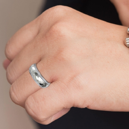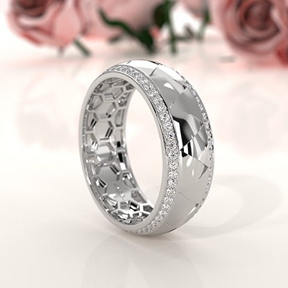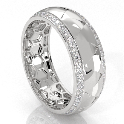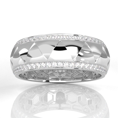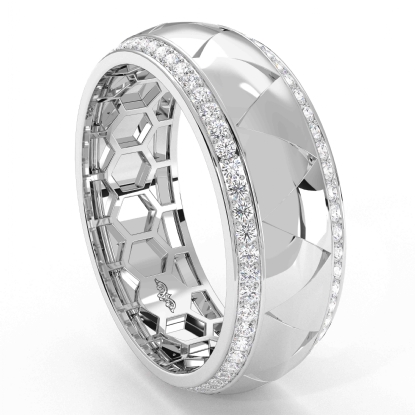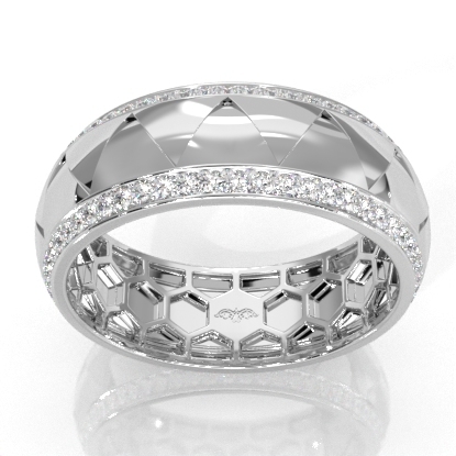 Comfort fit dome zigzag pattern round diamond eternity men's wedding band made in 14k white gold. This anniversary ring features polished finish center dome with zigzag pattern and 0.90 carat round diamonds in a micro pave setting on the edges with beautiful honeycomb design inside the ring. Also available in 14k & 18k white gold, yellow gold, rose gold and platinum 950. If you don't find your desired jewelry, please don't hesitate to contact our designer to make your custom jewelry design.