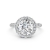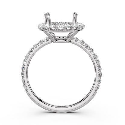 Adorn your outfit with this dazzling halo diamond engagement ring setting handcrafted in 14k white gold. This beautiful ring showcases a round semi mount encircled with 1.00 carat diamonds in a french U split pave setting on halo and shank. Also available in 14k & 18k white gold, yellow gold, rose gold and platinum 950. If you don't find your desired jewelry, please don't hesitate to contact our designer to make your custom jewelry design