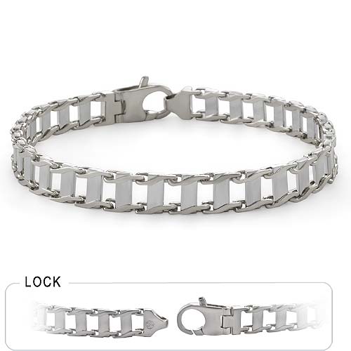 a polished finish 14kt white gold bracelet with a large unique lobster clasp
