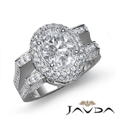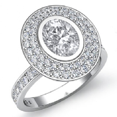 2 Row Halo Pave Bezel Set Oval diamond engagement Hot Deals in 18k Gold White
