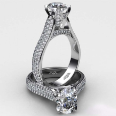 3 Row Micro Pave Set Shank Oval diamond Hot Deals in 18k Gold White