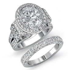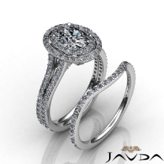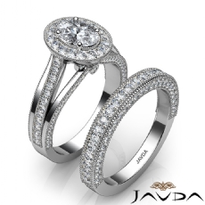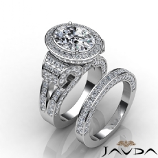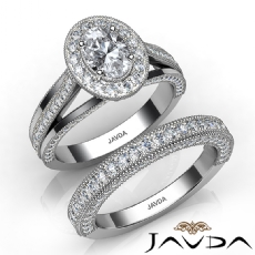 Antique Halo Pave Bridal Set Oval diamond engagement Hot Deals in 18k Gold White