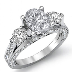 Three Stone Pave Sidestone Oval diamond engagement Hot Deals in 18k Gold White