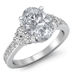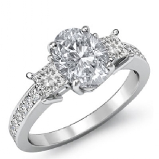 4 Row Pave Shank Three Stone Oval diamond engagement Hot Deals in 18k Gold White