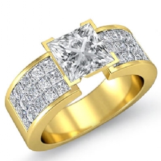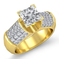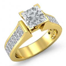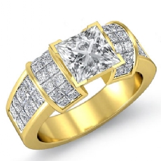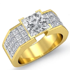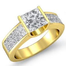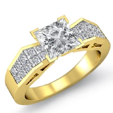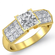Classic Side Stone Invisible Princess diamond engagement Hot Deals in 18k Gold Yellow