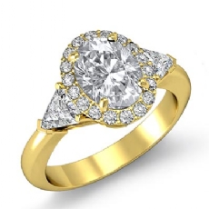 Three Stone Trillion Halo Oval diamond engagement Hot Deals in 18k Gold Yellow