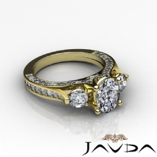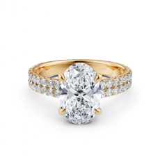 4 Row Pave Shank Three Stone Oval diamond engagement Hot Deals in 18k Gold Yellow