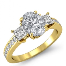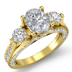 Three Stone Pave Sidestone Oval diamond engagement Hot Deals in 18k Gold Yellow