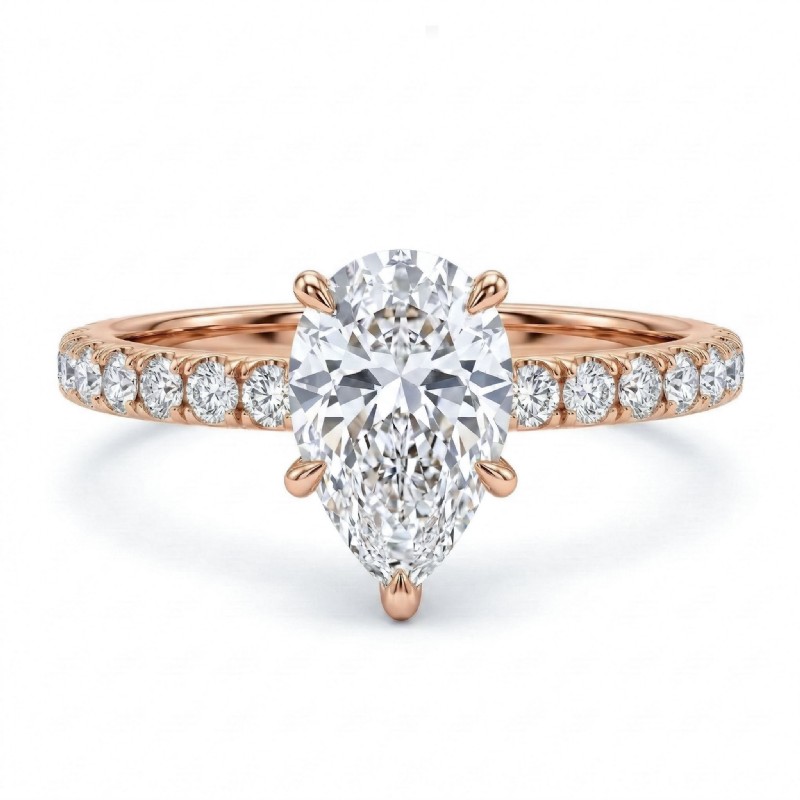 style Engagement Ring, center is Pear shape Diamond Report by GIA, D Color & VS1 clarity, Made in 18k Rose Gold (1.25 ct. tw.)