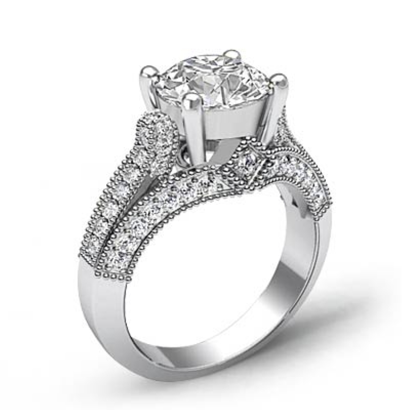 0.8Ct Round Diamond Engagement Milgrain Ring 18k White Gold Semi Mount.