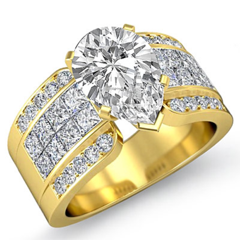 Invisible Set 4 Prong Peg Head style Engagement Ring, center is Pear shape Diamond Report by GIA, I Color & SI2 clarity, Made in 18k Yellow Gold (2.05 ct. tw.)