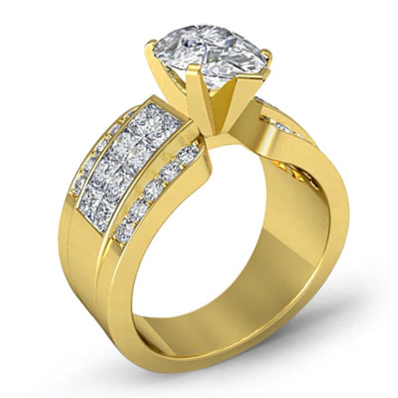 1.14Ct Round & Princess Diamond Engagement Invisible Setting Ring 18k Yellow Gold.