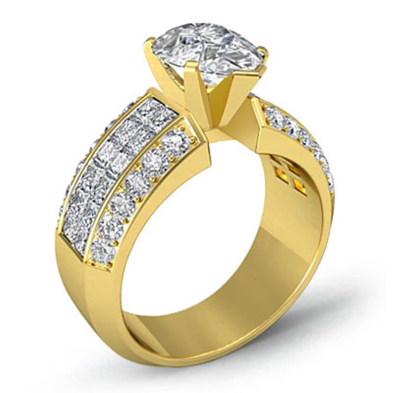 Round & Princess Diamond Engagement Invisible Semi Mount Ring 14k Yellow Gold 1.46Ct.