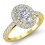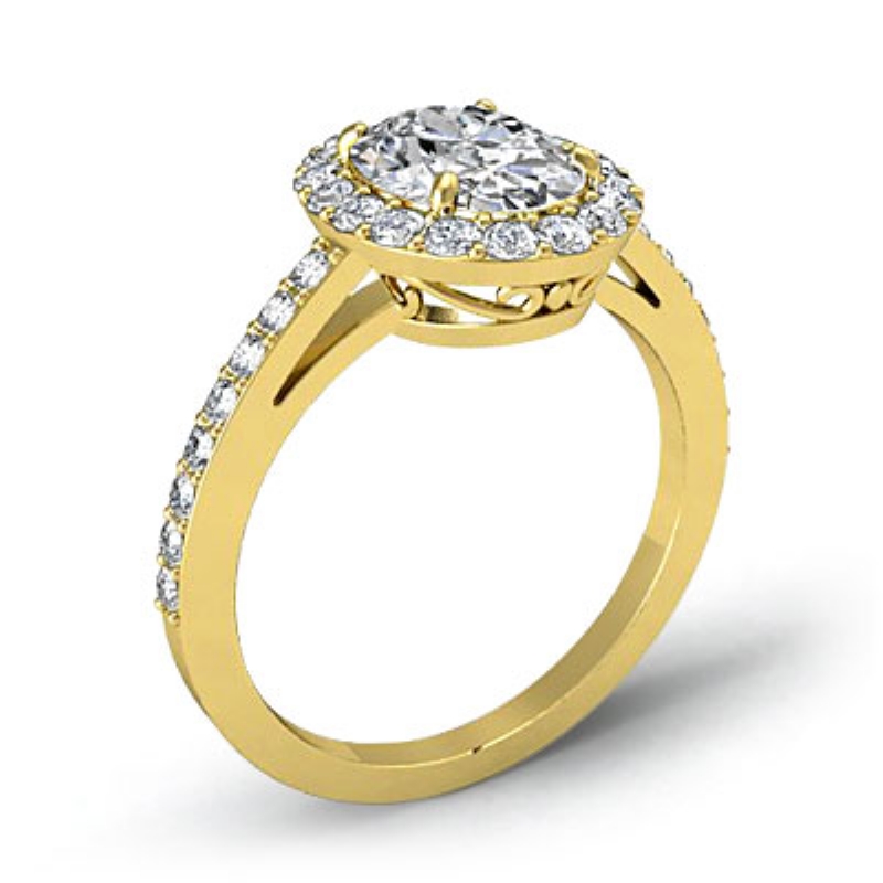 Filigree Oval Halo Pave Diamond Engagement Semi Mount Ring 18k Yellow Gold 0.45Ct.