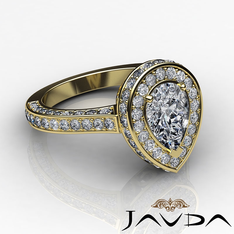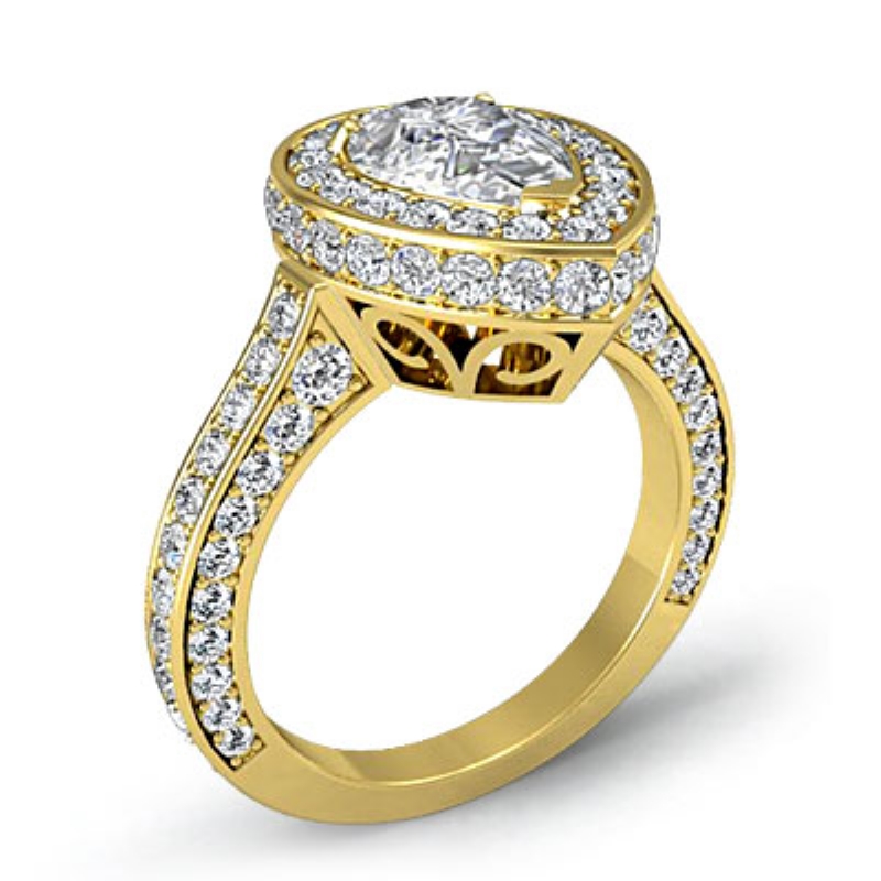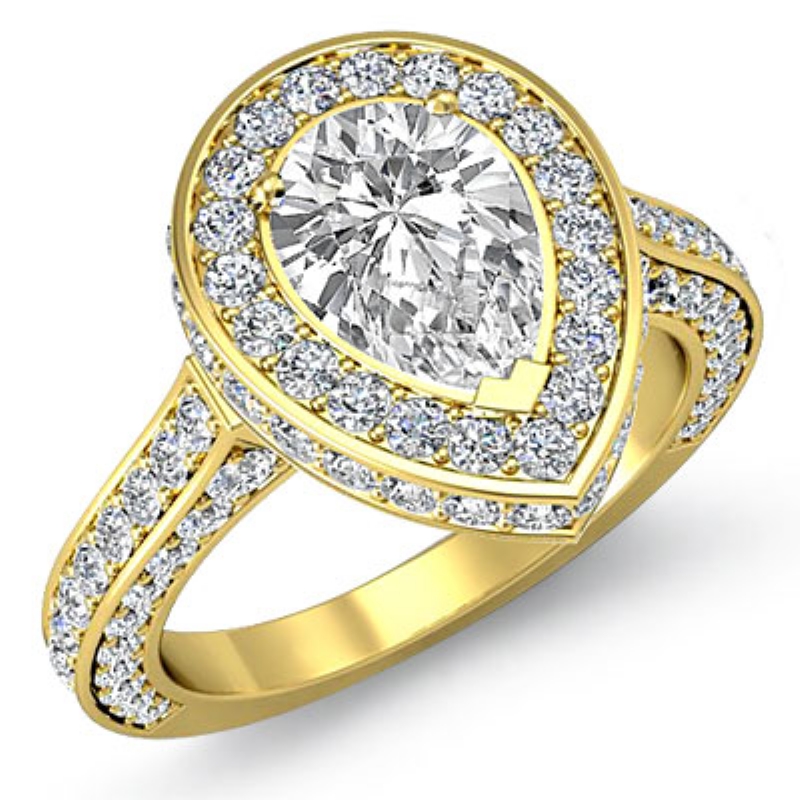 Circa Halo Side-Stone Pave style Engagement Ring, center is Pear shape Diamond Report by GIA, I Color & SI2 clarity, Made in 18k Yellow Gold (2.51 ct. tw.)