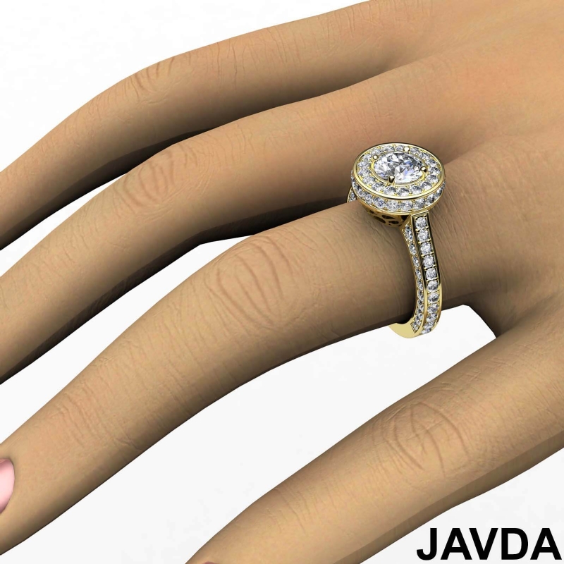 Circa Halo Side-Stone Pave style Engagement Ring, center is Round shape Diamond Report by IGI, G Color & VVS2 clarity, Made in 18k Yellow Gold (2.75 ct. tw.)