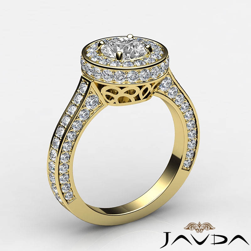 Diamond Engagement Ring Halo Pave Setting 18k Yellow Gold Round Semi Mount 1.6Ct.