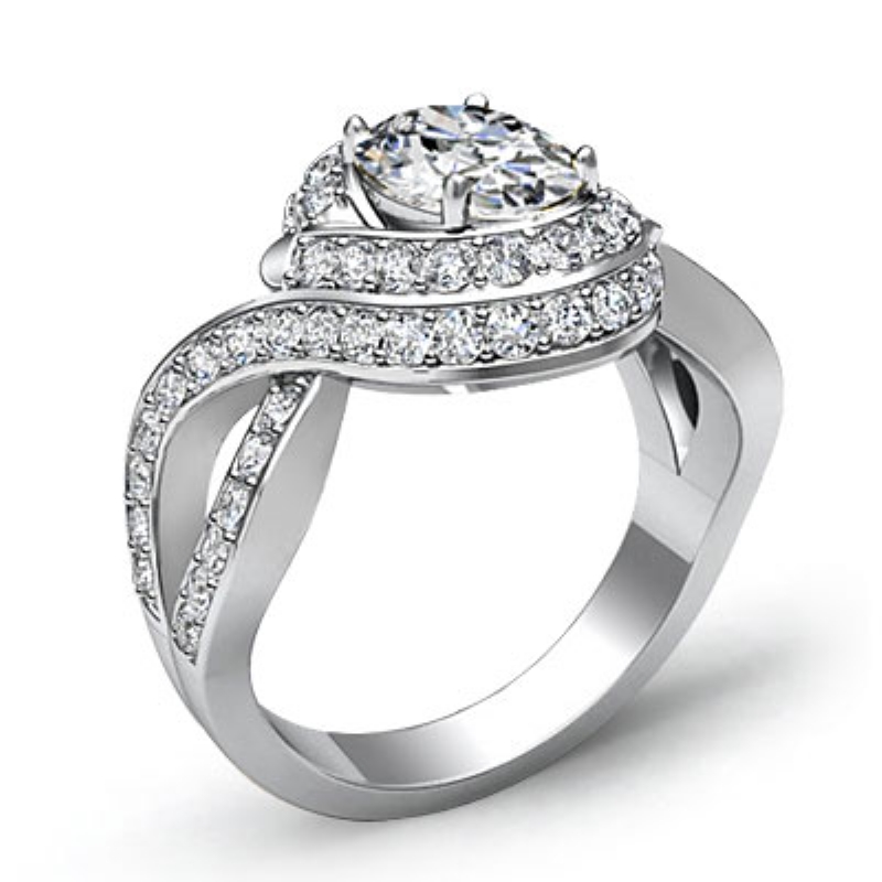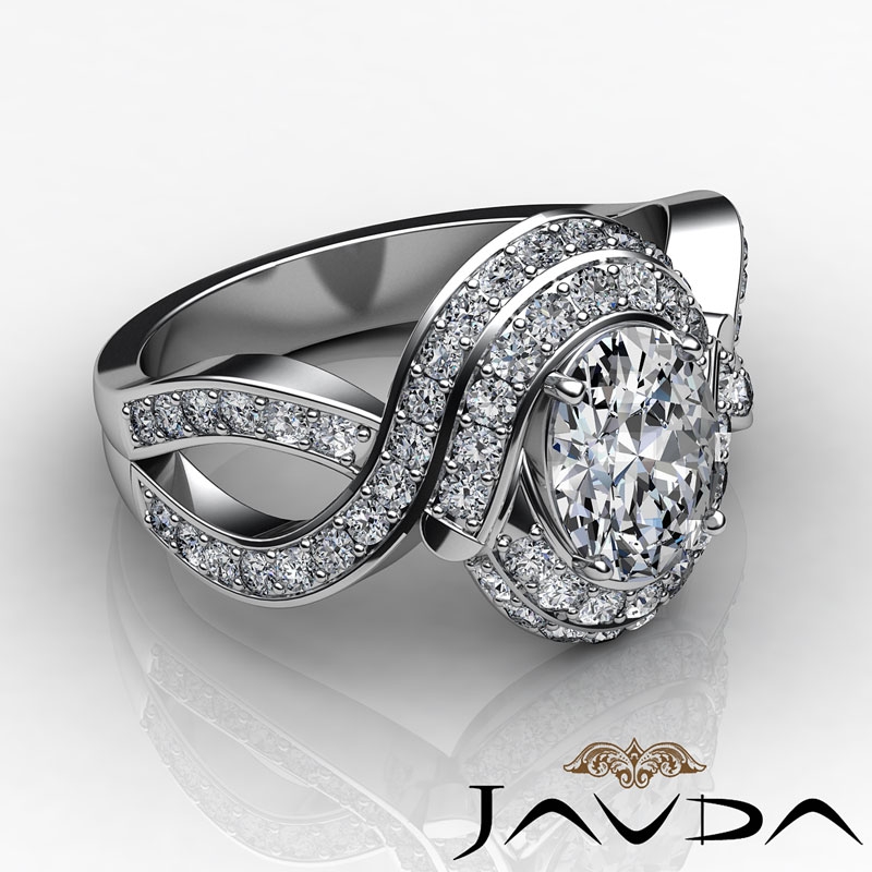 Curve Shank Halo Pave style Engagement Ring, center is Oval shape Diamond Report by GIA, D Color & VVS1 clarity, Made in Platinum 950 (1.8 ct. tw.)