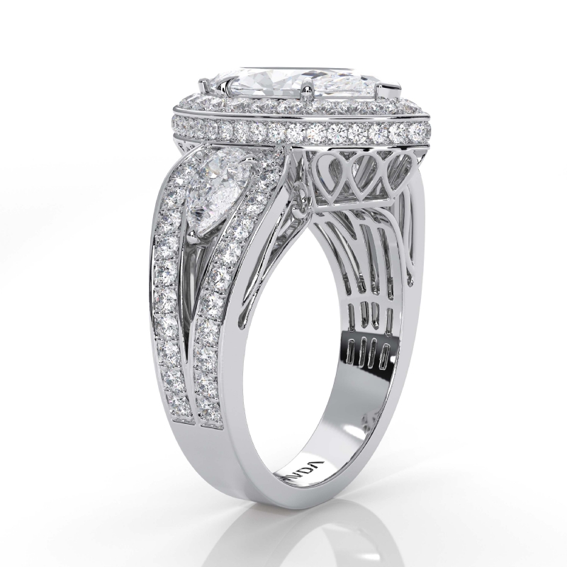 style Engagement Ring, center is Marquise shape Diamond Report by IGI, E Color & VS1 clarity, Made in 18k White Gold (3.27 ct. tw.)