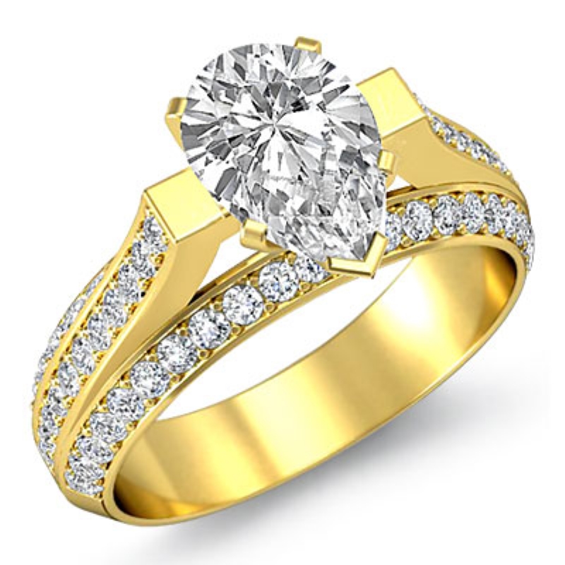 pear diamond engagement ring report by gia, i color & si2 clarity, 18k yellow gold (2.31 ct. tw.)