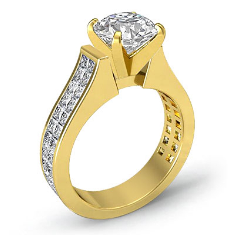 2.25Ct Princess Invisible Set Diamond Engagement Semi Mount Ring 18k Yellow Gold.