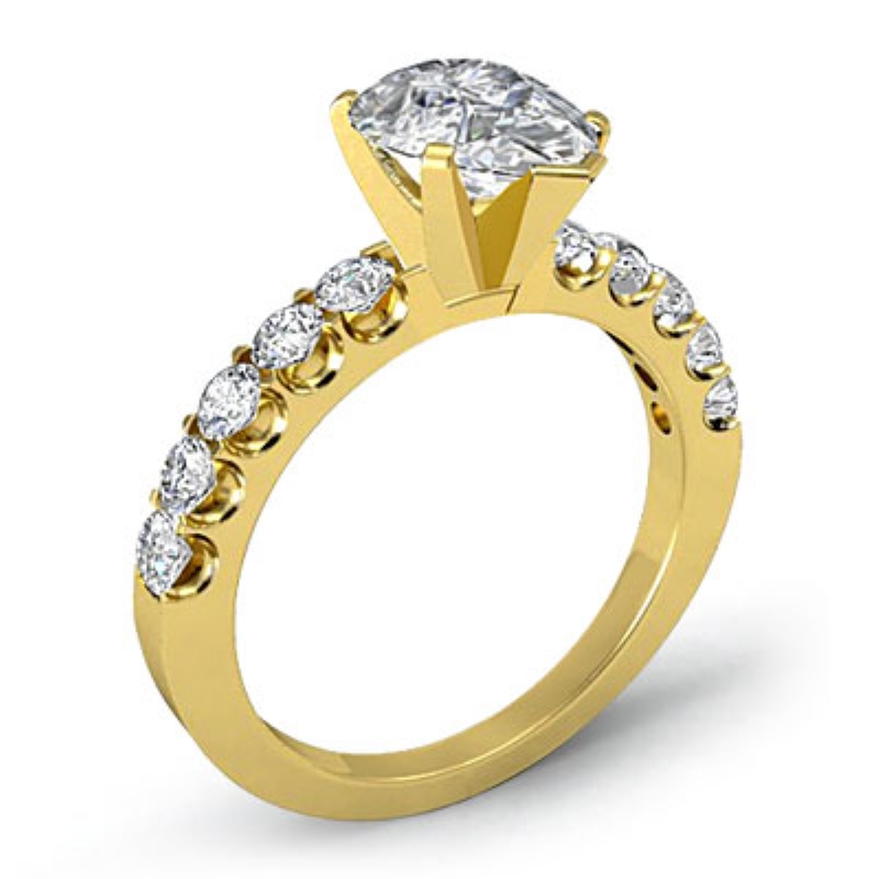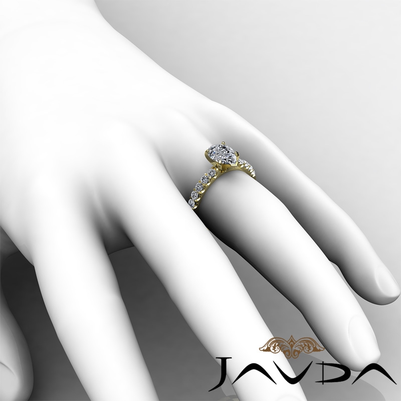 U Prong Setting Sidestone style Engagement Ring, center is Pear shape Diamond Report by GIA, D Color & VS1 clarity, Made in 14k Yellow Gold (1.25 ct. tw.)