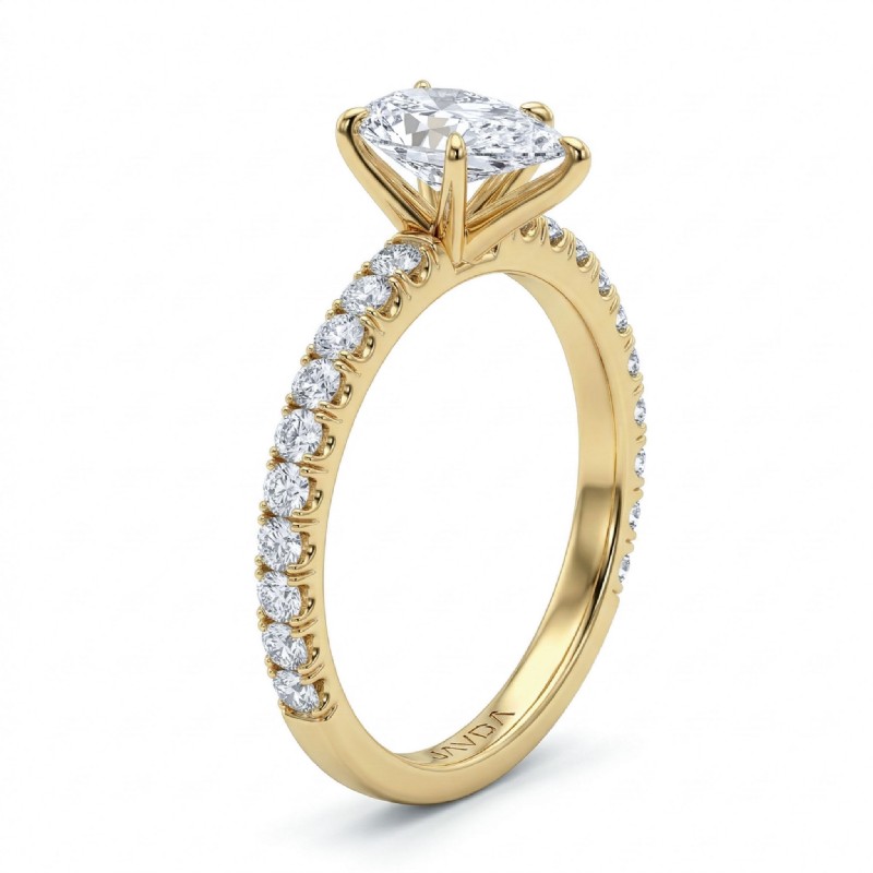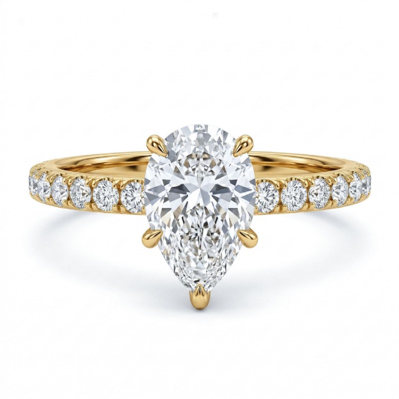 style Engagement Ring, center is Pear shape Diamond Report by GIA, D Color & VS1 clarity, Made in 14k Yellow Gold (1.25 ct. tw.)