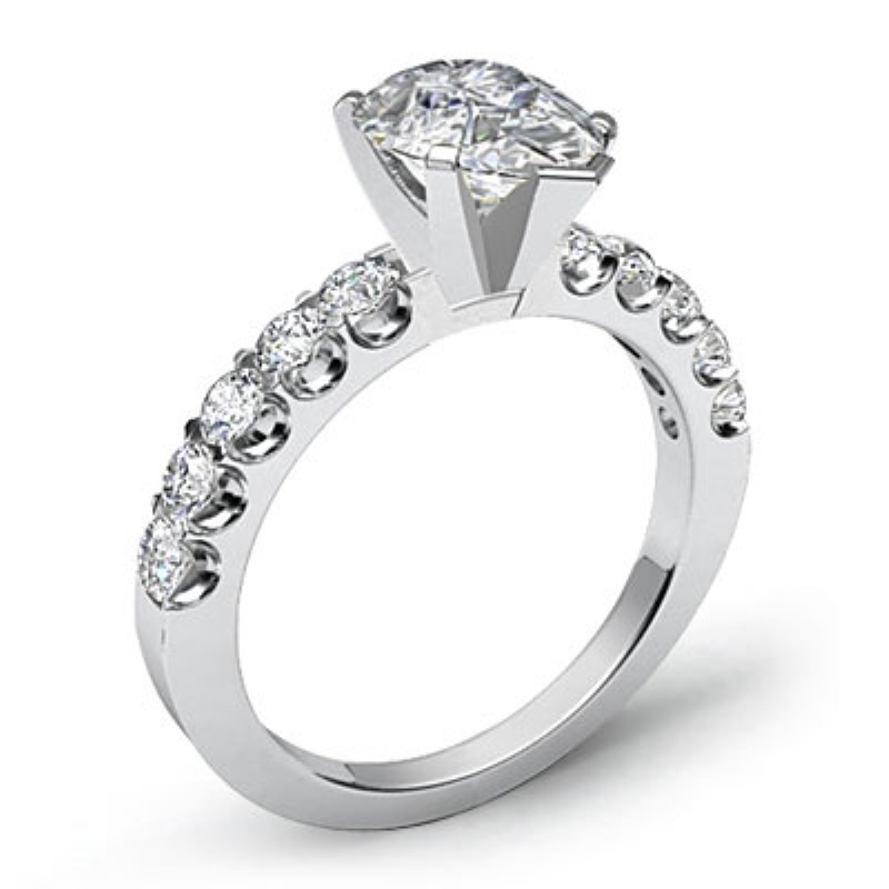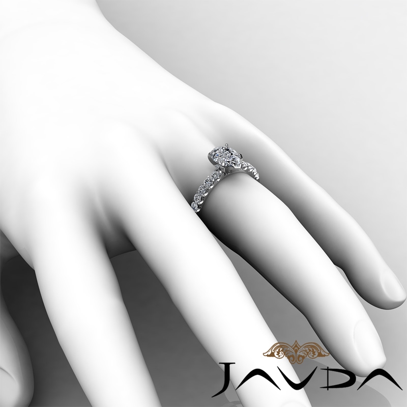 U Prong Setting Sidestone style Engagement Ring, center is Pear shape Diamond Report by GIA, D Color & VS1 clarity, Made in Platinum 950 (1.25 ct. tw.)