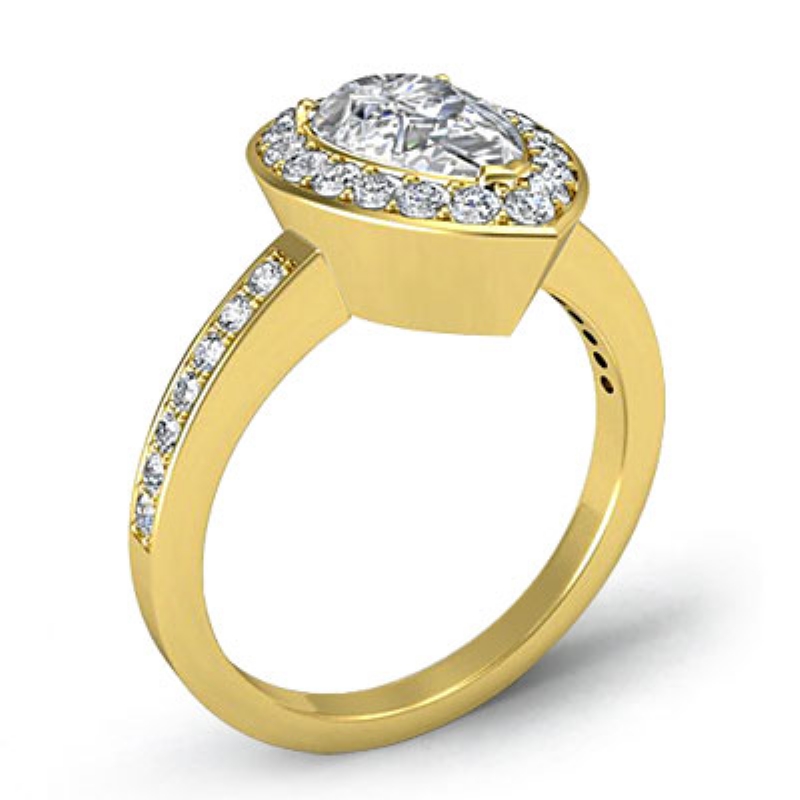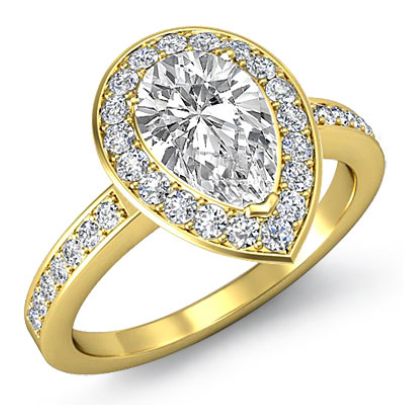 4 Prong Halo With Sidestone style Engagement Ring, center is Pear shape Diamond Report by GIA, I Color & SI2 clarity, Made in 18k Yellow Gold (1.91 ct. tw.)