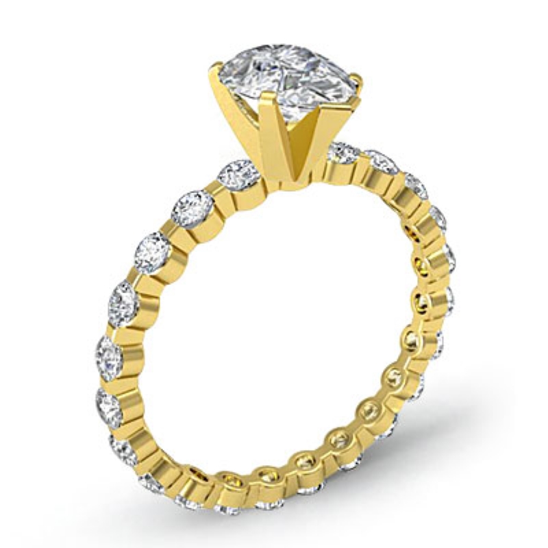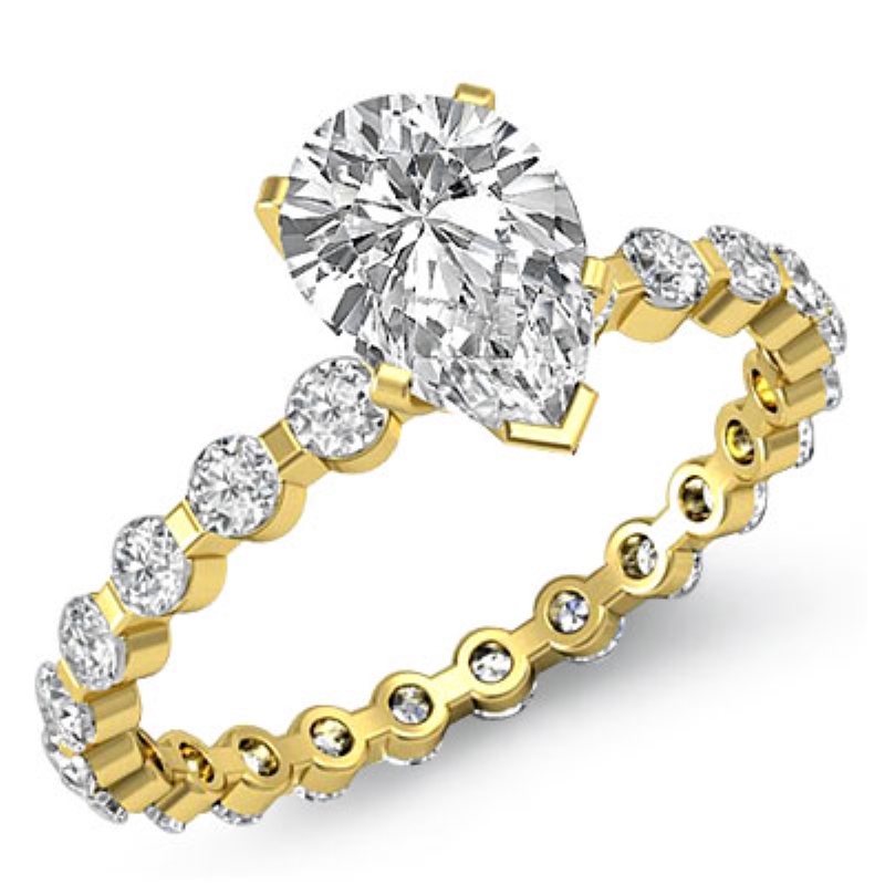 Bar Setting Eternity style Engagement Ring, center is Pear shape Diamond Report by GIA, I Color & SI2 clarity, Made in 18k Yellow Gold (1.31 ct. tw.)