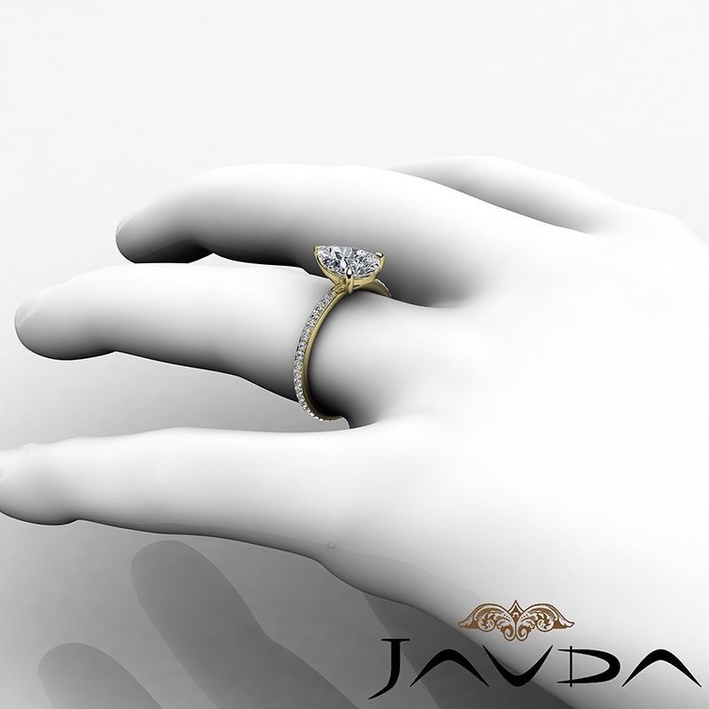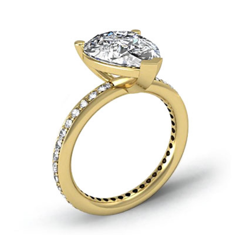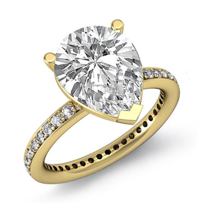 Eternity Classic Sidestone style Engagement Ring, center is Pear shape Diamond Report by GIA, F Color & SI1 clarity, Made in 14k Yellow Gold (1.02 ct. tw.)