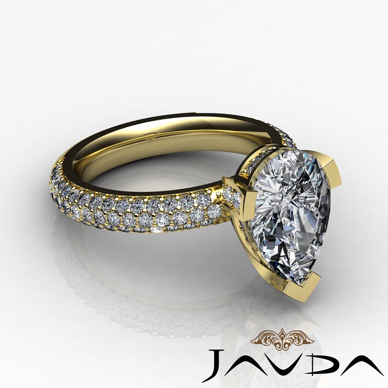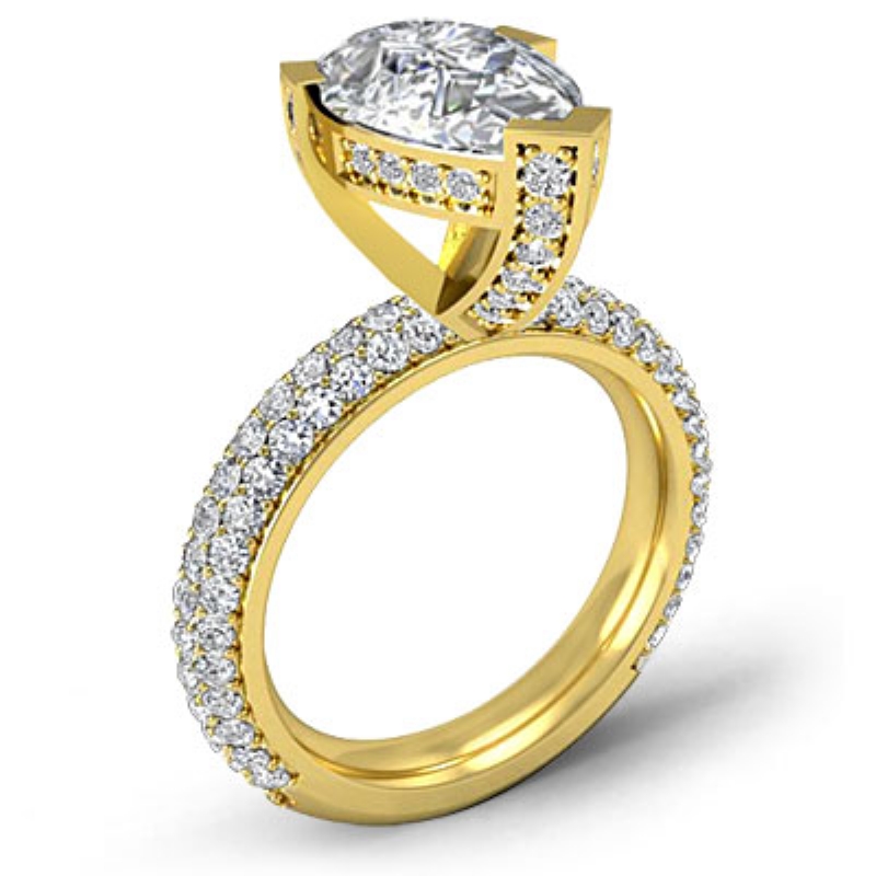 1.47Ct Diamond Pave Engagement Women Ring Pear Setting 18k Yellow Gold.